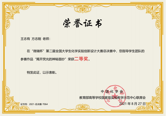8月25日-27日,“微瑞杯”第二届全国大学生化学实验创新设计竞赛全国总决赛在青岛科技大学举行。九九精品视频一区在线久久久久久久久久毛片精品美女|国产99久久久久久免费看|中文精品99久久国产|国产69精品久久久久9999|精品久久久久久中文字幕无码|亚洲熟妇无码久久精品国产精品99|精品国产天堂综合一区在线化学工程学院应用化学系马桂林、宋雪、任丽爽3人团队的科普实验作品“揭开荧光的神秘面纱”(指导老师:王志有、方志刚)获二等奖。