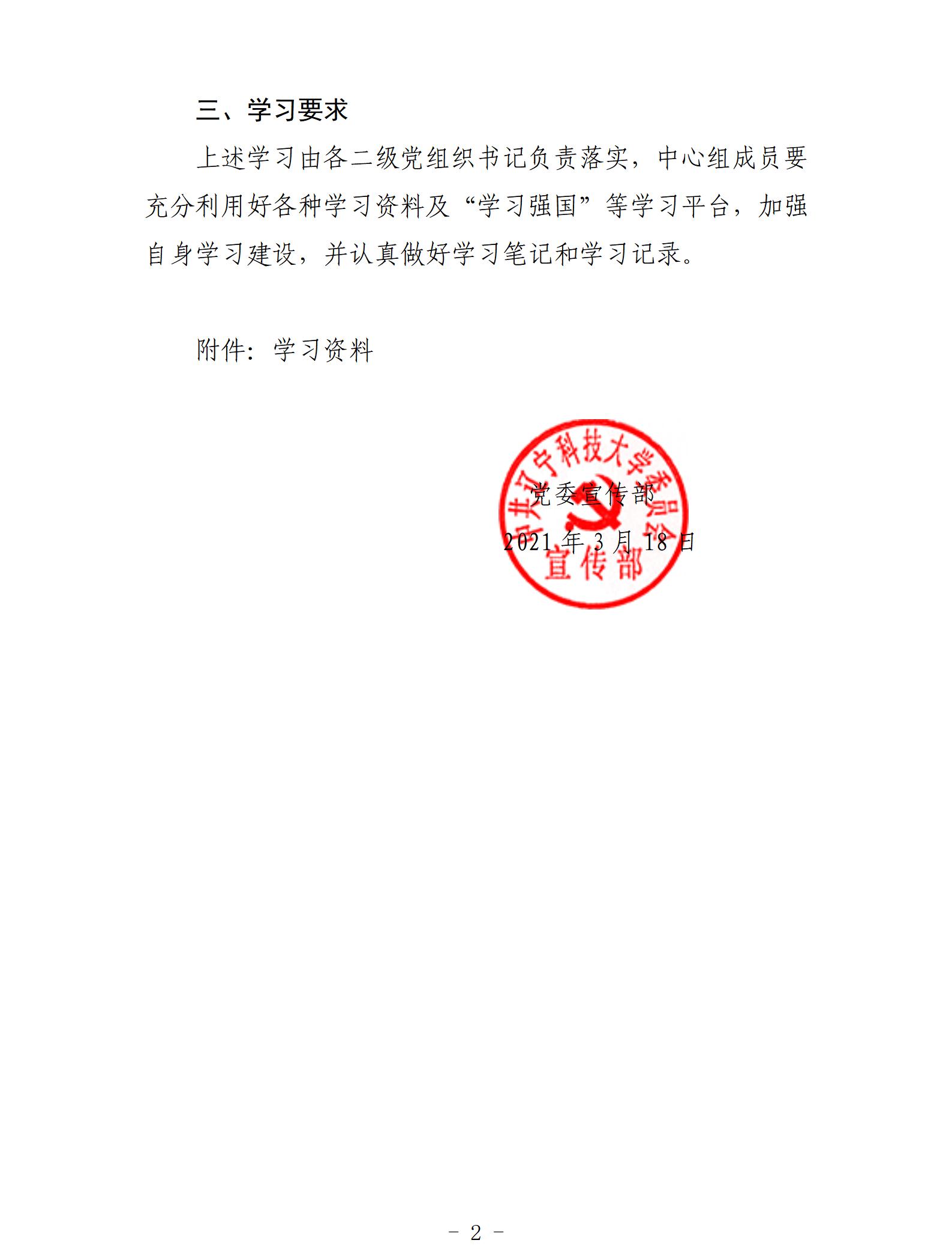 2021年3月党委理论学习中心组学习安排意见