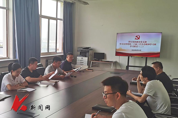 机关党委学生处招就处党支部开展学习宣传党的二十届三中全会精神专题学习研讨会,党支部书记纪振廷主持会议。